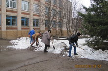 Сегодня дежурной группой был проведен средник по уборке прилегающей территории техникума. Студенты очистили территорию от снега и мусора.