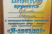 Студентка 511 группы Леванова Александра участвовала в муниципальном конкурсе «Я звезда», который собрал ярких студентов из ССУЗов и ВУЗов г.Чистополь. Конкурс был организован психолого-педагогическим центром с целью выявления лидеров среди студентов и формирования навыков конкурентной борьбы. Александра была награждена в номинации «Звездная перспектива». Поздравляем и желаем дальнейших успехов!