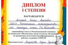 Победа в Республиканской олимпиаде для студентов ПОО РТ по дисциплине «Математика»