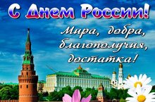 Поздравляем с Днем России! Величие и мощь нашей страны вызывает трепет и уважение. Пусть в душе каждого гражданина будет место для любви к своей Родине. Пусть сила духа предков принесет развитие и благополучие, даст силы для великих достижений и веру в прекрасное будущее. Пусть щедрость российской земли принесет достаток и уют, умиротворение и гармонию в каждый дом! Счастья вам и процветания!