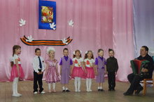 8 мая 2017 года дети дошкольного и младшего школьного возраста приняли участие в праздничной программе, посвящённой Дню Победы, проведённой совместно с сельским ДК.