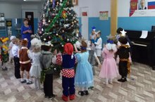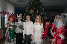 25 декабря 2015 года младшие школьники пели песни, рассказывали стихи, играли возле новогодней ёлки.