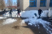 В рамках санитарно-экологического двухмесячника 7 апреля 2021 года сотрудниками МБОУ был проведён средник по очистке пришкольной территории от снега.