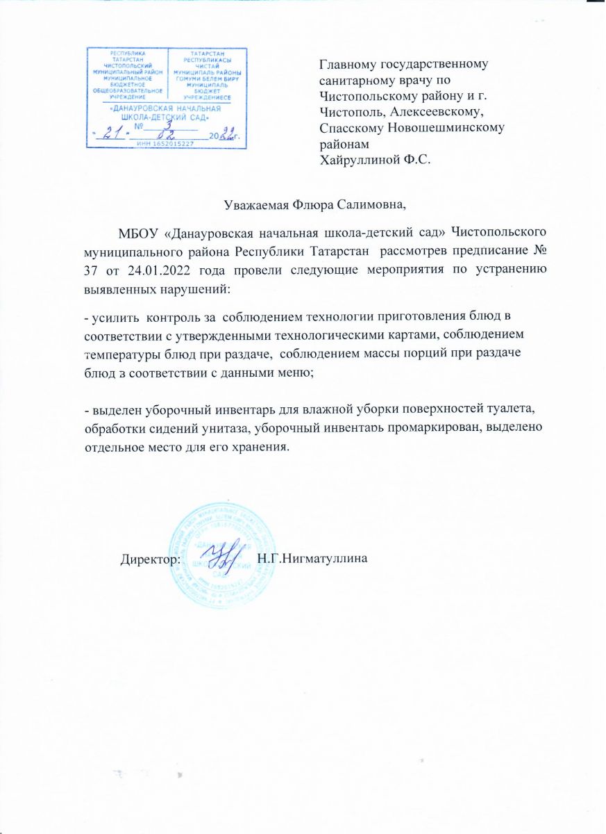 Ответ МБОУ об исполнении предписания Роспотребнадзора