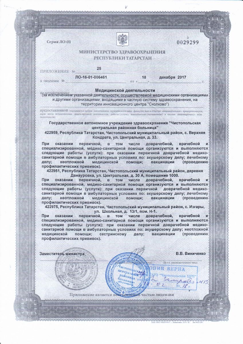 Копия Приложения № 25 к Лицензии Министерства здравоохранения РТ