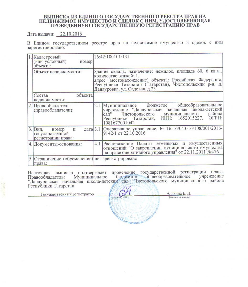 | Адрес: | 422953, Республика Татарстан, Чистопольский район, д. Данауровка, ул. Садовая, д. 23 |