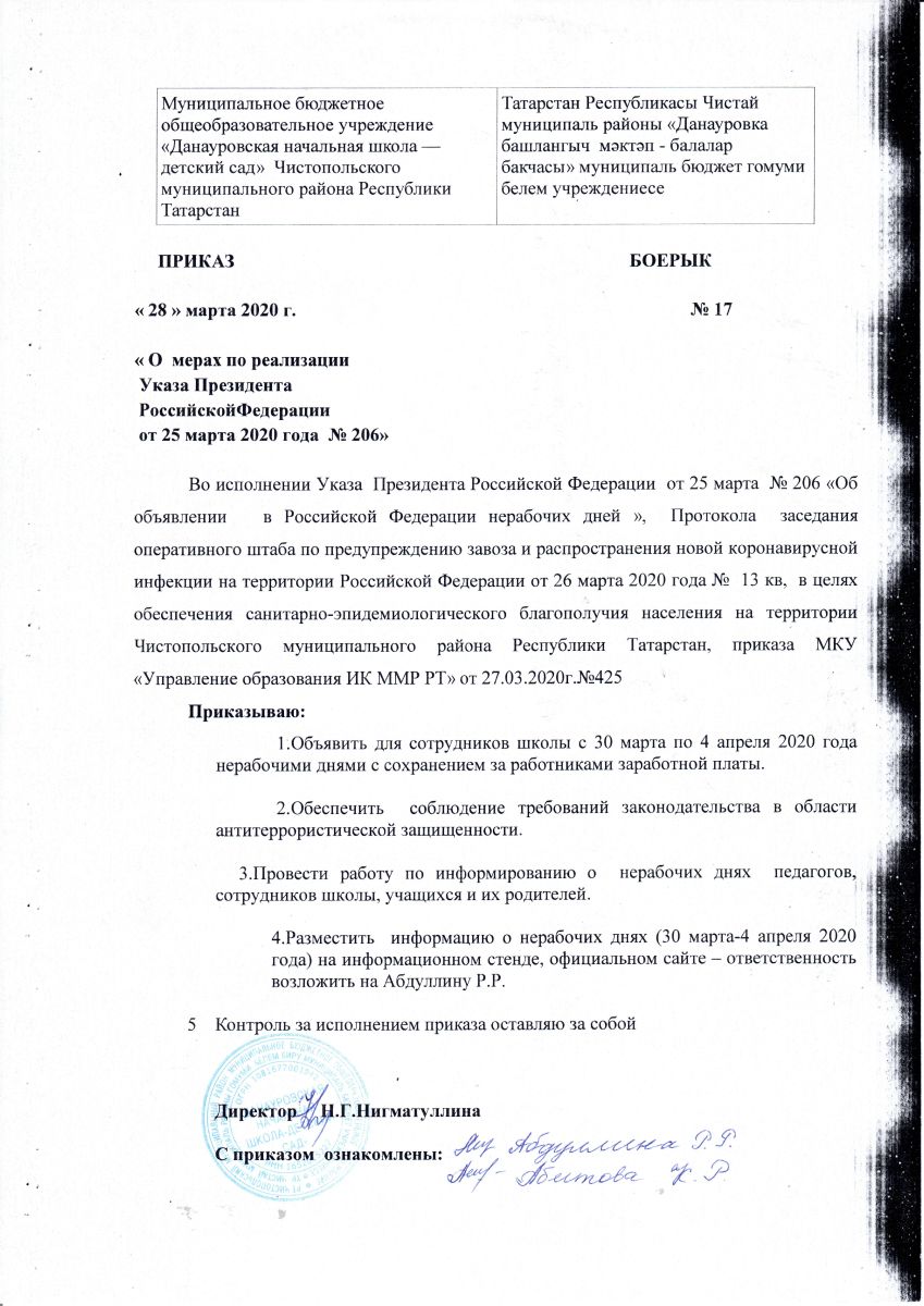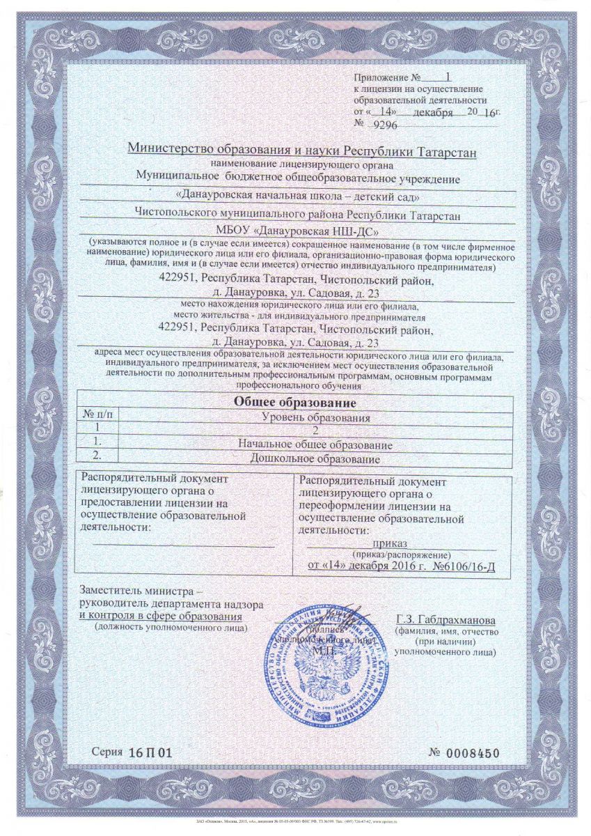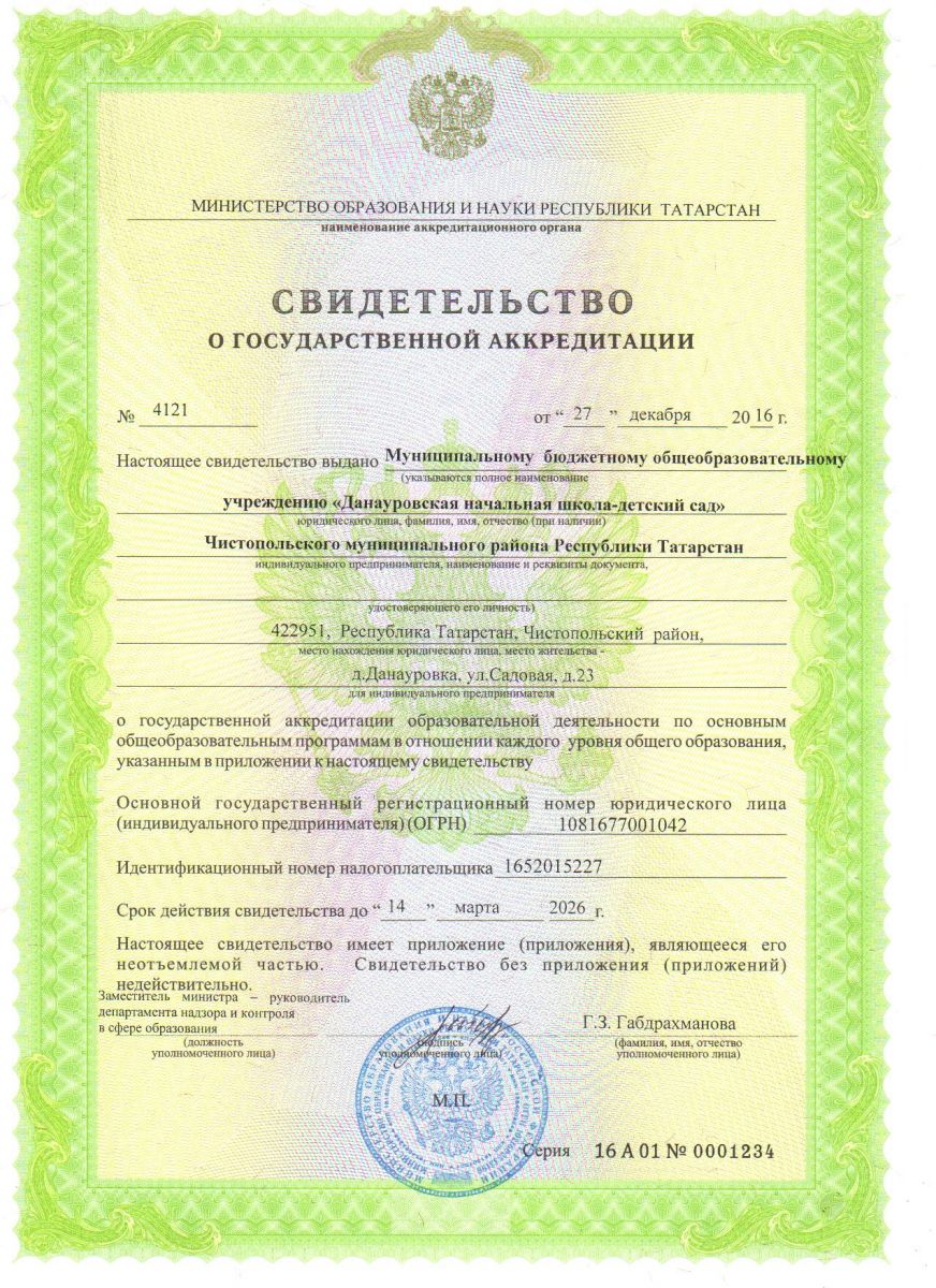 Муниципальное бюджетное общеобразовательное учреждение «Данауровская начальная школа-детский сад» Чистопольского муниципального района Республики Татарстан/Татарстан Республикасы Чистай муниципаль районы "Данауровка башлангыч мәктәп - балалар бакчасы" муниципаль бюджет гомуми белем бирү учреждениесе