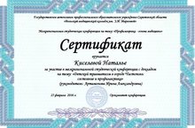 25 февраля 2016 года на базе ГАПОУ Саратовской области «Вольский медицинский колледж им. З.И. Маресевой» проходила Межрегиональная студенческая конференция «Профилактика – основа медицины». Студентка III курса специальности Сестринское дело ГАОУ СПО РТ «Чистопольское медицинское училище (техникум)» Киселева Наталья выступила с докладом на тему: «Детский травматизм в городе Чистополь: состояние и профилактика». Руководитель работы – преподаватель СПО РТ «Чистопольское медицинское училище (техникум)» Артамонова Ирина Александровна.