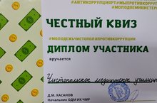 Сегодня в Молодежном центре прошла интеллектуальная игра "Честный квиз" по профилактике коррупции. Команда Чистополького медицинского училища стала участником этой игры.