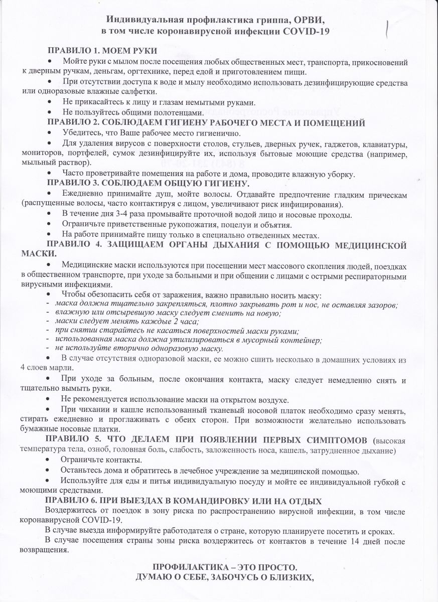 Памятка профилактики (индивидуальная профилактика., на рабочих местах)
