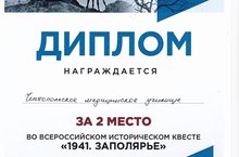 1 марта прошел всероссийский исторический квест «1941.Заполярье». В нем поучаствовала команда студентов из Чистопольского медицинского училища и заняла второе место.