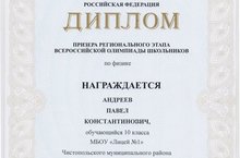 Андреев Павел, ученик 10 А класса МБОУ «Лицей №1», стал призёром регионального этапа Всероссийской олимпиады школьников по физике. На муниципальном этапе Павел был призёром по физике и информатике. Пожелаем успеха Павлу на региональном этапе по информатике!