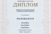 Чехонина Екатерина, ученица 8 класса МБОУ «Лицей №1» стала призером регионального этапа Всероссийской олимпиады школьников по литературе.