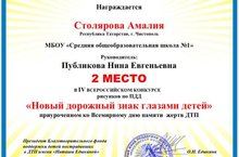 Ученица МБОУ СОШ №1 приняла участие в 4 всероссийском конкурсе «Новый дорожный знак глазами детей».