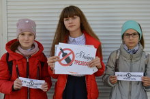 Наши активисты вышли на улицы города с акцией "Скажи нет табачному яду!". Цель акции: привлечение внимания, школьников и взрослого населения города к проблемам курения и повысить стремление учащихся жить без вредной привычки.