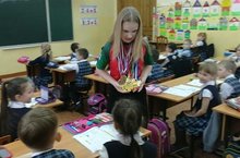 В рамках празднования 100-летия Татарской АССР прошла встреча учащихся начальных классов с чемпионкой Европы по армрестлингу «Наши чемпионы- гордость Республики». Учащаяся 8 класса рассказала о своих спортивных достижениях, о своих тренировках и трудностях спортивной жизни. Ребята имели возможность рассмотреть медали спортменки, задать интересующие их вопросы.