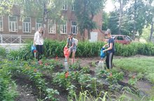 Ребята из трудового отряда ежедневно помогают в благоустройстве школьной территории. Сегодня они ухаживали за клумбами: пропалывали, рыхлили и поливали.Хезмәт отрядына йөрүче балалар , һәркөн мәктәп янын матурайтырга булышалар. Бүген алар чәчәк түтәлләрен йомшарттылар, су сиптеләр. -