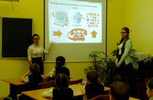 В рамках акции «Час кода в России» ученицами 11 класса Павлихиной Анастасией и Лихачевой Алёной проведён тематический классный час на тему «Информационные технологии» в 1 Б классе. Ученикам в увлекательной форме рассказали о мире информационных технологий и о возможностях их использования. В ходе беседы первоклассники охотно поделились своим опытом использования информационных технологий, а также вспомнили меры необходимой безопасности по их использованию.