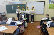 Продолжает работу отряд ЮИД "Клаксон" по зимней безопасности на улицах города. На очередном занятии ЮИДовцы провели занятие с учащимися 2-х классов, научили их как вести себя в гололед и в пургу на проезжей части.