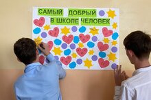 В рамках Недели психологии "Шаги к психологическому благополучию" в школе был изготовлен плакат для учащихся, где они могли высказать свое мнение, написав "Кто же, все таки, самый добрый человек в школе? "