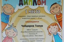 Учащийся 3 В класса Тимур Чабдаров стал абсолютным победителем в республиканском конкурсе "Моя семья- мое богатство".