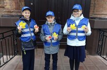 ЮИДовцы раздавали поздравительные открытки сделанные своими руками и светоотражатели. Также, напомнили о безопасности на улицах города.