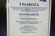 Ученица 6Б класса Сахабутдинова Регина приняла участие в муниципальном конкурсе "Моя бабушка платит трубкой", руководитель Дорофеева Е.В.