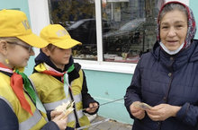 В День добра и уважения, участники отряда ЮИД "Клаксон" Провели акцию на улицах города, где раздавали пожилым людям светоотражатели и открытки с поздравлениями.