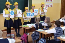Отряд ЮИД "Клаксон" продолжает занятия по изучению ПДД с учащимися 1-х классов. В следующую встречу ЮИДовцы познакомили ребят с дорожными знаками.