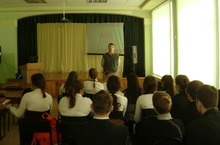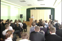 Выступление руководителя отряда "Выстрел" перед учащимися школы 22.02.2014