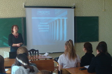 Заместитель директора Корольков В.А. и доцент кафедры "Экономика АПК" Хамитова И.А. ознакомили ребят с правилами вступительных испытаний, с профессиями, которые можно получить в их филиале.