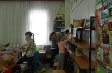 6 день. Ребята из трудового лагеря активно помогли школьному библиотекарю в расстановке книг по стеллажам.