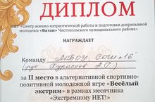 Команда нашей школы приняла участие в альтрнативной спортивно-позитивной молодежной игре "Веселый экстрим" и заняла 2 место. Поздравляем!