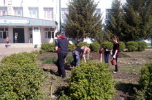 Сегодня состоялся субботник.Учащиеся восьмых классов и технический персонал приводили в порядок школьный двор.