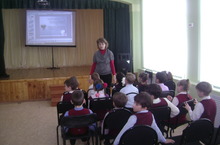 Елезарова О.Г. - библиотекарь школы, знакомила детей как правильно нужно обращаться с книгами, показывая на экране презентацию. Дети с удовольствием слушали библиотекоря и учились правильно относится к книгам.