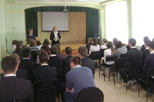 19.03.14 г. в 17:00 проходило тематическое общешкольное собрание, на котором выступили: сотрудник ОГИБДД - Шарифуллин Руслан Тагирович и сотрудник ПДН - лейтенант полиции Камалова Эльвира Асхатовна.