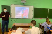 В рамках месячника военно-патриотической работы учащиеся 5-х классов встретились с командиром поискового отряда «Выстрел». Дмитрий Владимирович провёл для ребят урок мужества, посвящённый Сталинградской битве, а также рассказ о работе поискового отряда и продемонстрировал найденные во время экспедиции экспонаты.