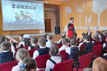 провели для учащихся первых классов просветительское занятие, с целью ознакомления с историей хоккея и привлечения детей к занятиям этим видом спорта???? -