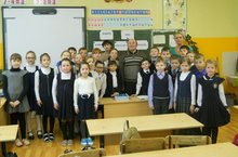 12 декабря в 3 «В» классе состоялся классный час на тему «Твори добро», посвящённый декаде инвалидов. Дети с радостью бежали на мероприятие, ведь их ожидала интересная встреча с талантливым чистопольцем, незрячим поэтом и переводчиком Рифкатом Гардиевым. Встречу подготовили классный руководитель Каюмова Елена Валерьевна, школьный библиотекарь Жильцова Ольга Леонидовна и библиотекарь Филиала №7 Елена Валерьевна Быкова. Рифкат Гарайханович рассказывал о слепых детях и взрослых, говорил о том, как трудно им жить и трудиться, но незрячие люди никогда не унывают и очень любят жизнь. Больные люди не только занимаются творчеством, но и спортом! Рифкат Гарайханович рассказал о том, как слепые пользуются компьютером, он для них создан говорящий, как и телефон. Чистопольский поэт показал книги по Брайлю, при помощи, которых читают незрячие. Рифкат читал свои детские стихи, стихи о природе и родине, и отвечал на вопросы. Дети подготовились к встрече – нарисовали рисунки и выучили стихи Рифката Гардиева.