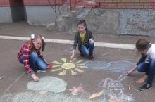 1июня открыл свои двери пришкольный лагерь «Краски лета. В Международный день защиты детей на детской площадке прошел конкурс рисунков на асфальте под девизом «Пусть всегда будет солнце!» между 2 и 4 отрядами. Дети проявили свои творческие способности. Рисунки получились красивыми и разными по тематике. В конце конкурса были определены победители и призеры.