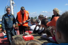 23 июня ребята из пришкольного лагеря «Краски лета» посетили станцию маломерных судов. Инспектор МЧС ГИМС М.Г Марфин ознакомил ребят с правилами поведения на воде и продемонстрировал разные способы оказания помощи утопающим.