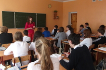 с психологом-профконсультантом из ГКУ ЦЗН. Она провела с учащимися школы лекции и анкетирование по выбору профессиональной ориентации.