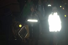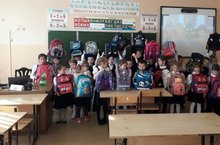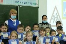 Во время мероприятия на рюкзаки всех школьников были приклеены светоотражающие элементы. -