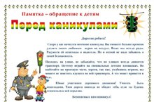-обеспечению безопасности детей в каникулярное время;
