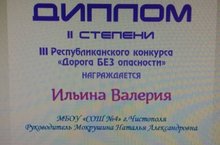 Поздравляем Ильину Валерию!!! Она призер III Республиканского конкурса "Дорога без опасности"