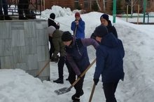 В рамках республиканской акции "ЭКОВЕСНА 2019" учащиеся 8-х классов вышли на очистку от снега территории школы. Работали слаженно, с улыбкой.