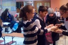 Первый день масленицы отметили выступлением ансамбля ложкарей "Самоцветы" и угощением всех пришедших в школу - блинами. -