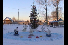 В предверии Нового 2013 года во дворе школы у новогодней елочки учащиеся оформили "Лебединое озеро".