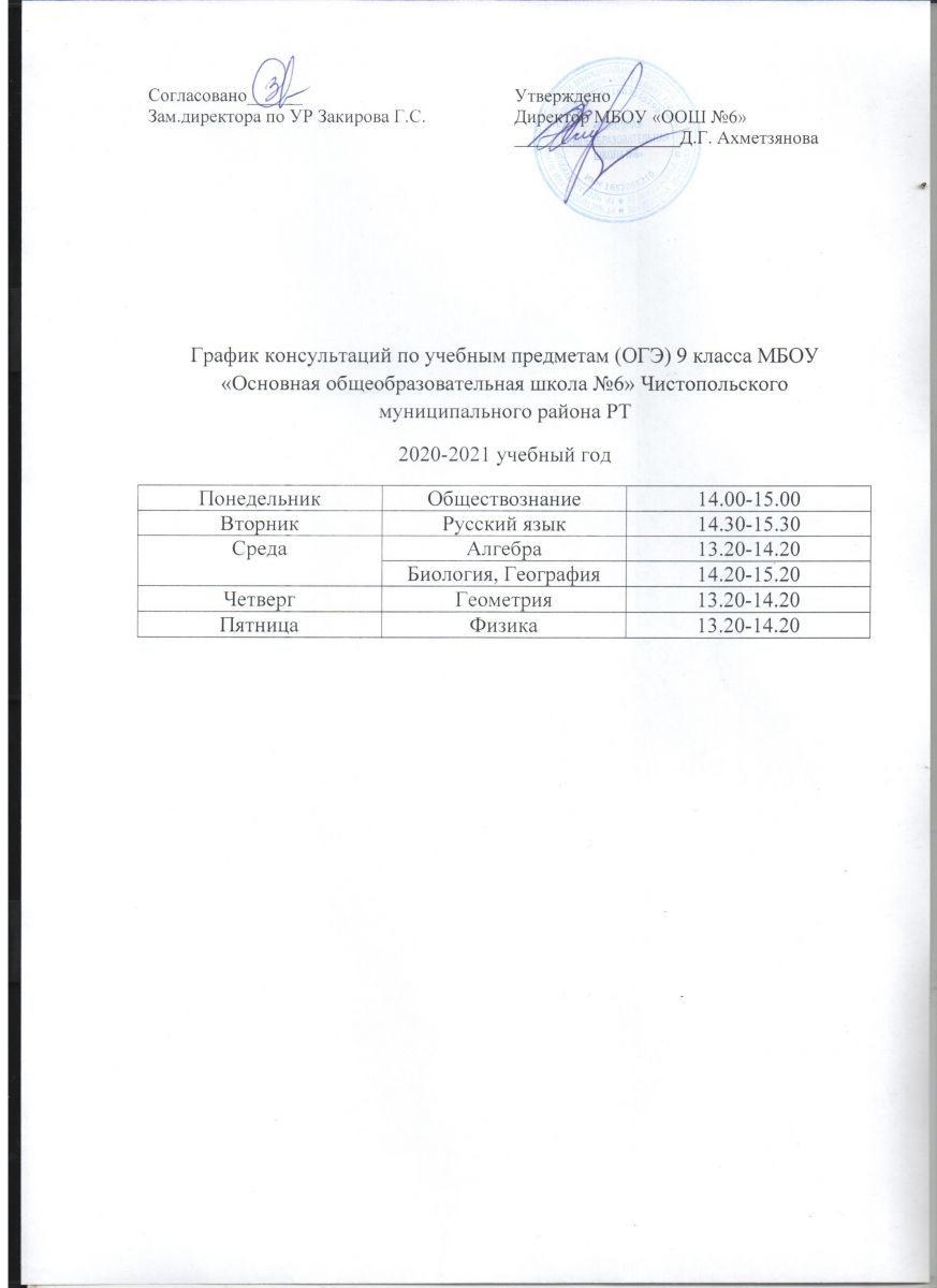 Расписание консультаций ГИА на 2020-2021 учебный год