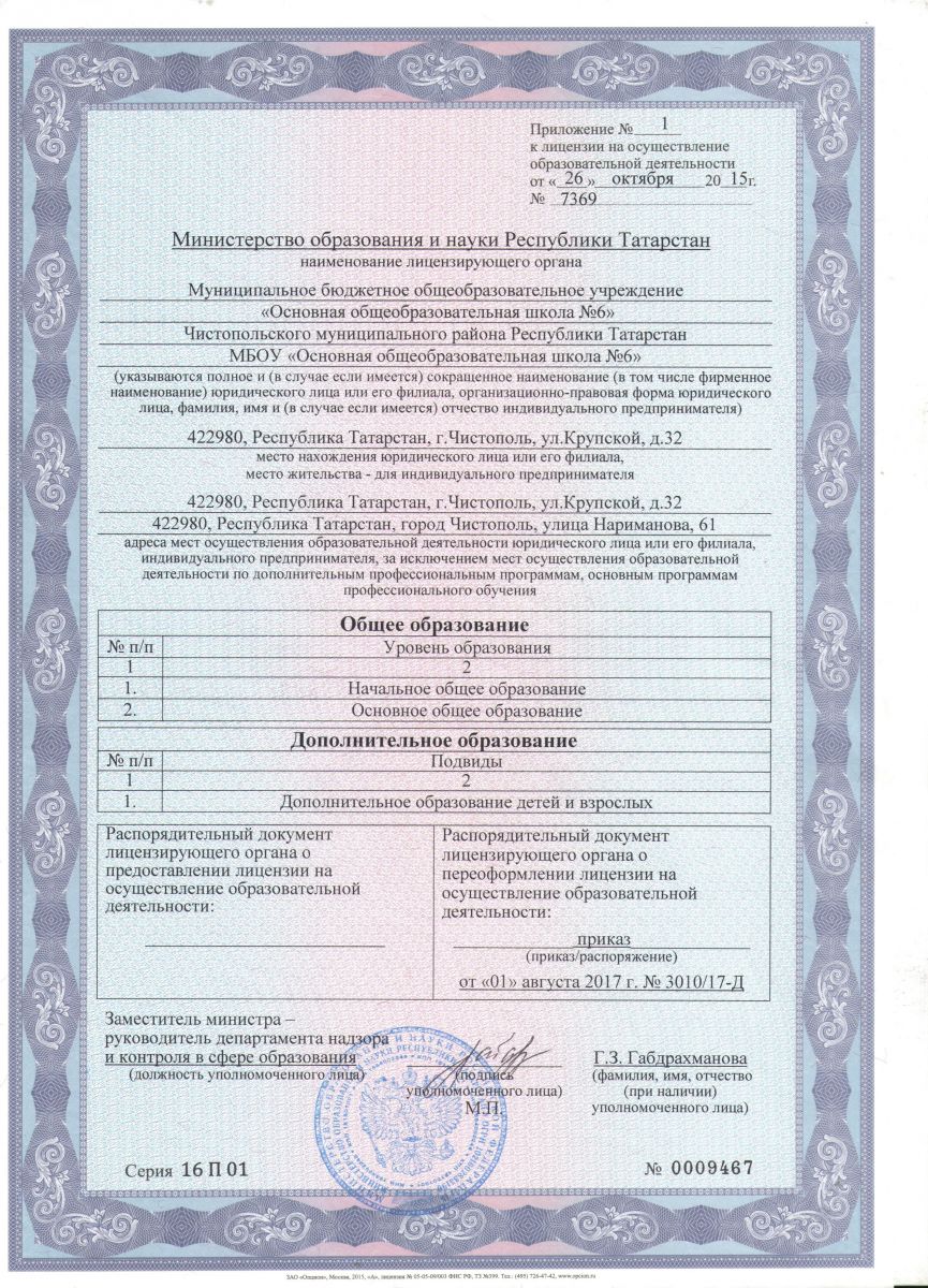 Муниципальное бюджетное общеобразовательное учреждение «Основная общеобразовательная школа №6» Чистопольского муниципального района Республики Татарстан/Татарстан Республикасы Чистай муниципаль районының "6-нчы номерлы төп гомуми белем бирү мәктәбе" муниципаль бюджет гомуми белем бирү учреждениесе